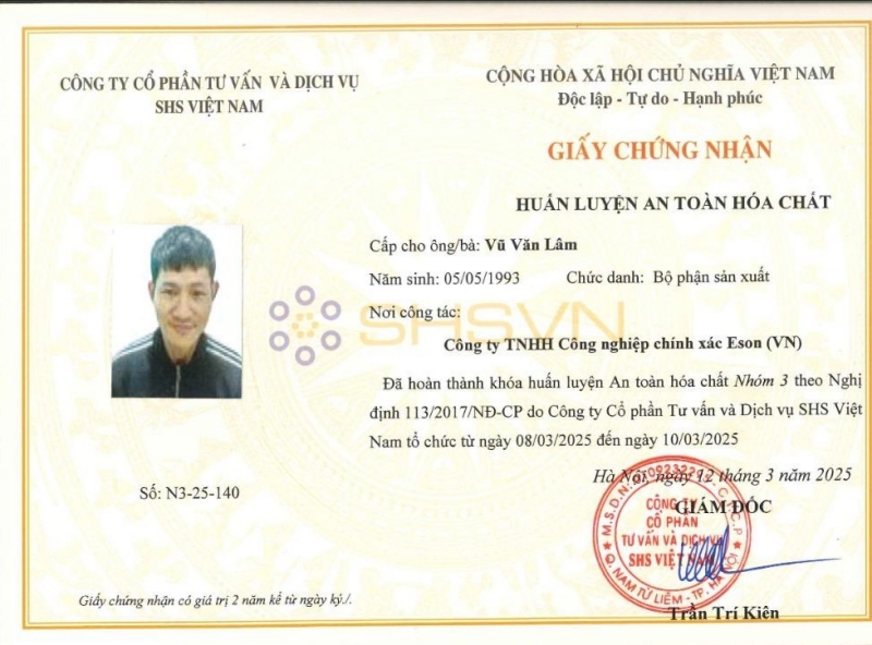 Chúng tôi được Bộ Lao động – Thương binh và Xã hội (MOLISA) cấp phép đủ điều kiện hoạt động huấn luyện an toàn. Mọi hồ sơ cấp thẻ an toàn nhóm 3 đều được đội ngũ tư vấn viên của SHS hỗ trợ trọn gói từ khâu lập danh sách, chuẩn bị giấy tờ đến lúc trao thẻ tận tay doanh nghiệp. Nhanh chóng – Chỉnh chu – Chuẩn pháp luật.