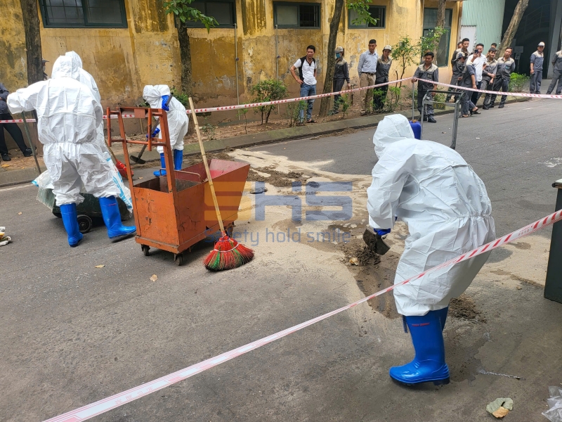 • Diễn tập kỹ năng sơ cấp cứu tai nạn lao động, quy trình thoát hiểm, ứng phó sự cố khẩn cấp ngay tại hiện trường giả định của nhà máy.