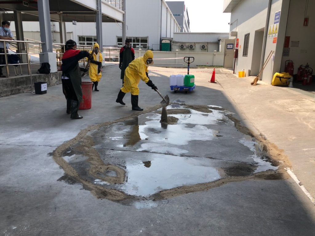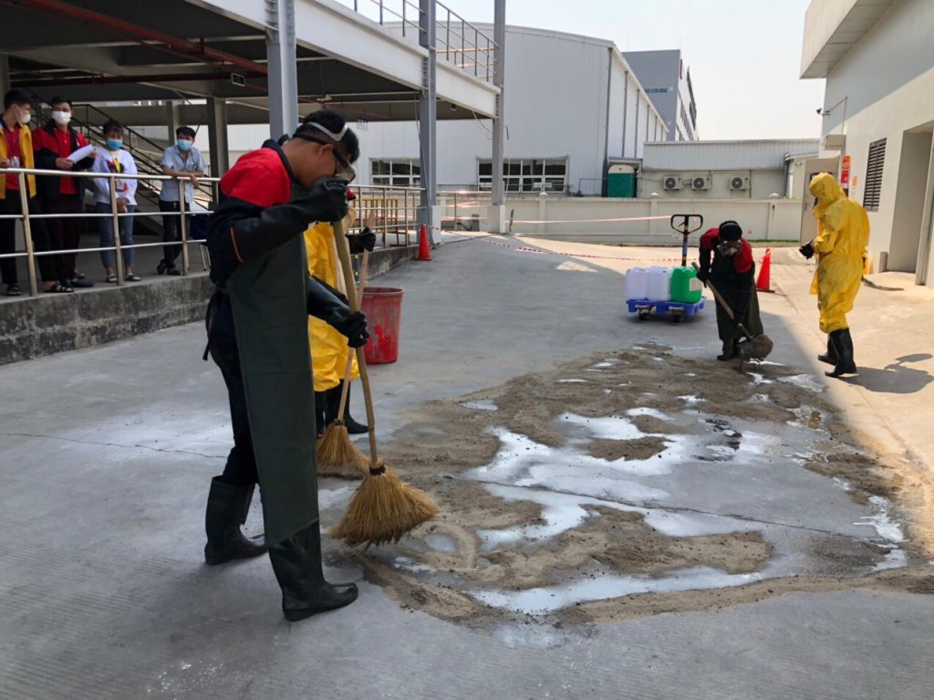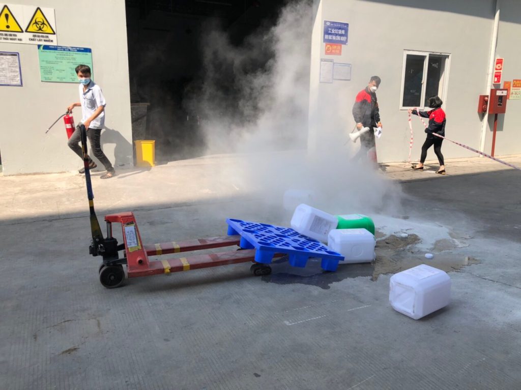 SHSVN TỔ CHỨC THỰC HÀNH ỨNG PHÓ SỰ CỐ TRÀN ĐỔ HÓA CHẤT TẠI CÔNG TY LENS