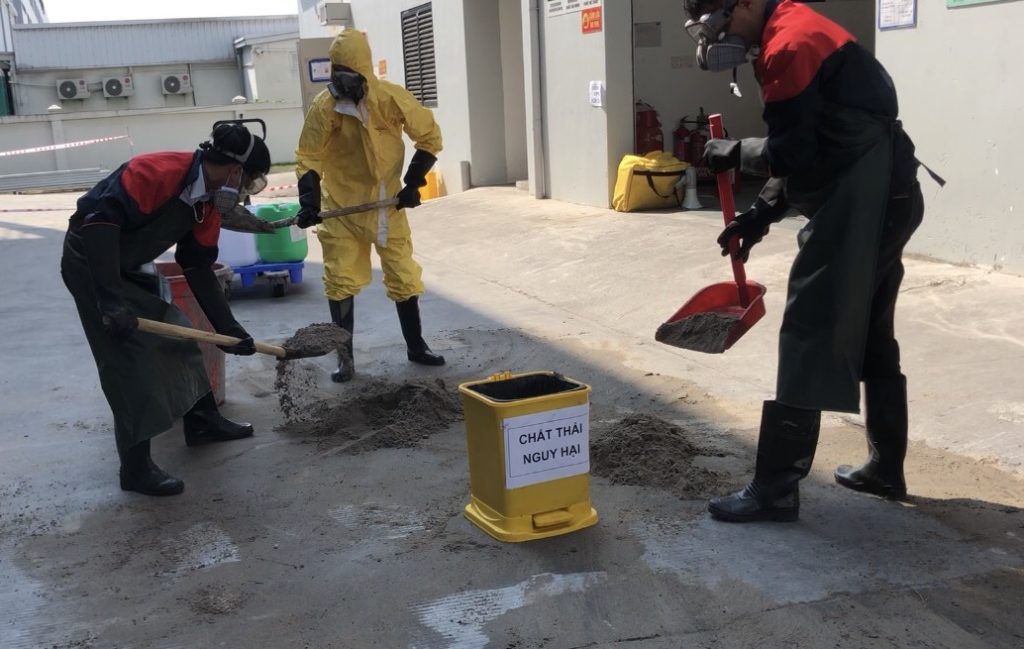 • Đội ứng cứu khẩn cấp triển khai các bước: cảnh báo – khoanh vùng – sử dụng vật liệu trung hòa, thấm hút – thu gom xử lý an toàn.