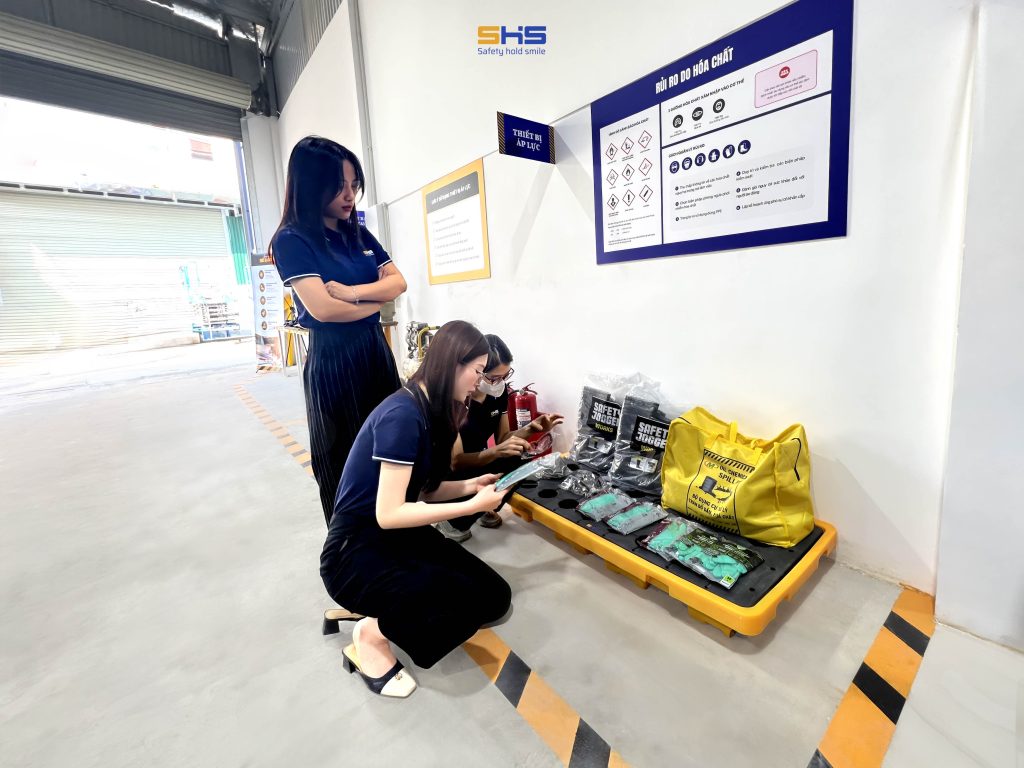 Trang bị đầy đủ Spill Kit và Phương tiện bảo vệ cá nhân để huấn luyện thực hành xử lý sự cố tràn đổ hóa chất theo quy trình.